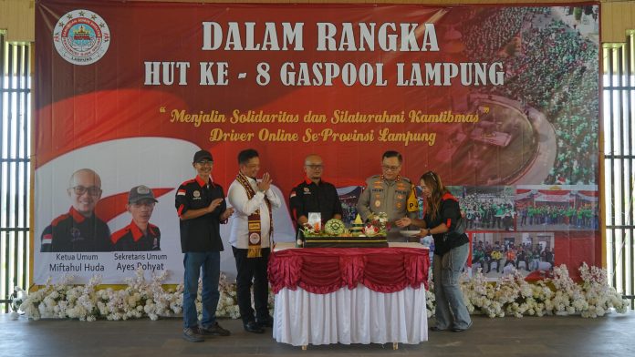 “Atas nama Polda Lampung, saya mengucapkan selamat ulang tahun yang ke-8 untuk Gaspool Lampung. Kami sangat mengapresiasi peran aktif rekan-rekan driver online yang telah menjadi mitra strategis dalam menjaga situasi Kamtibmas dan menjadi peran penting dalam memberikan pelayanan mobilitas masyarakat Lampung,” ucap Irjen Pol. Helmy Santika.